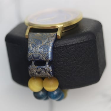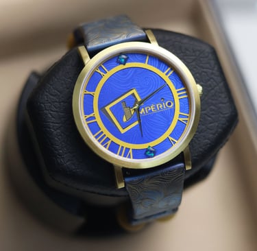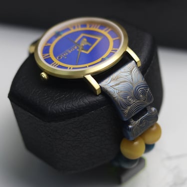 The dial is the piece de resistance. Assembled over three layers, we pulled off one of the most intricate dial cut ever accomplished at Amalgam Watches Co., the logo of Imperio Properties. Two Water Opals adorns the 12 and 6 o'clock mark. Hue engraving inspired by 'Van Gogh, Starry Night' is added on the blue plate